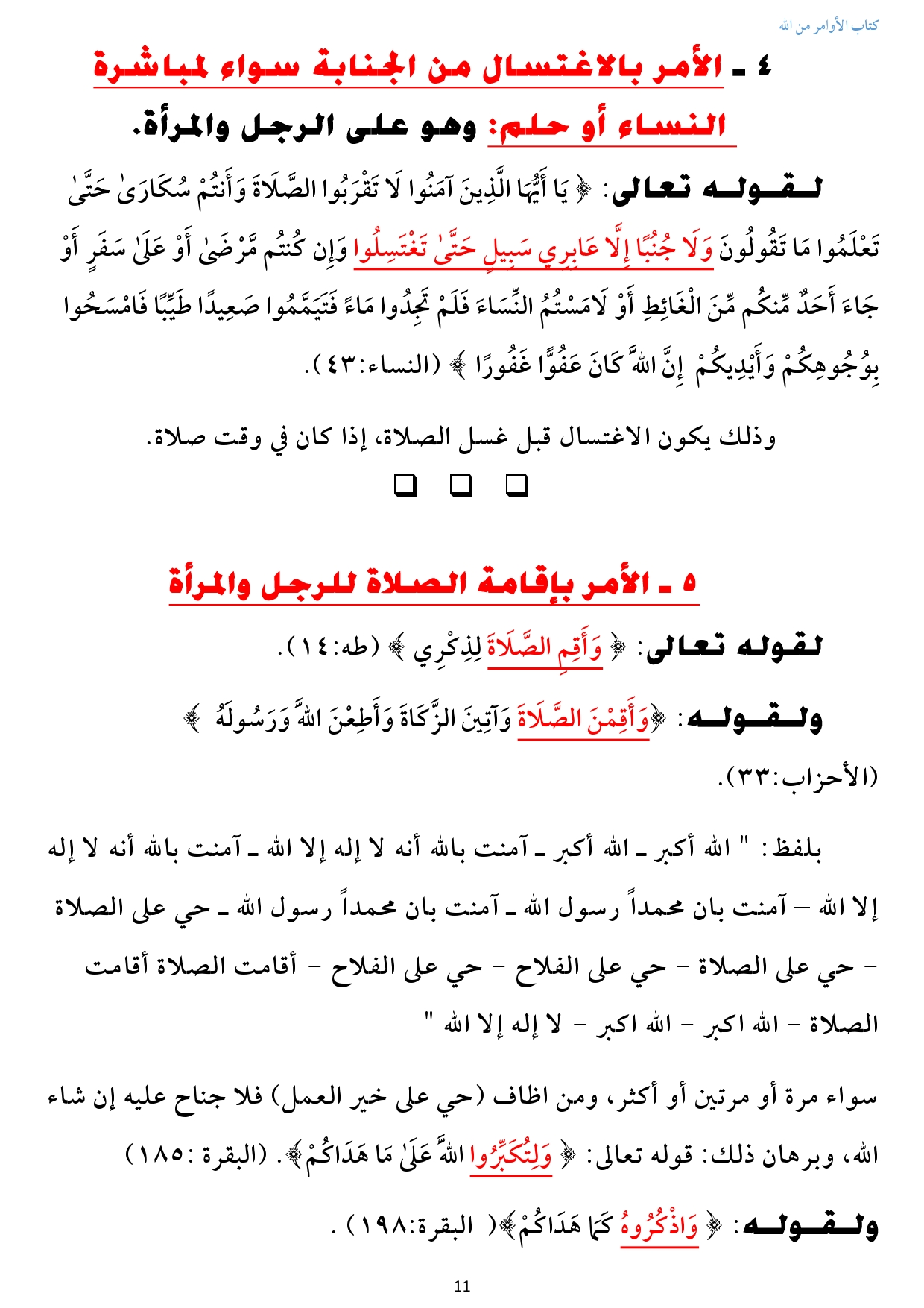 الأمر بالاغتسال من الجنابة والامر بإقامة الصلاة