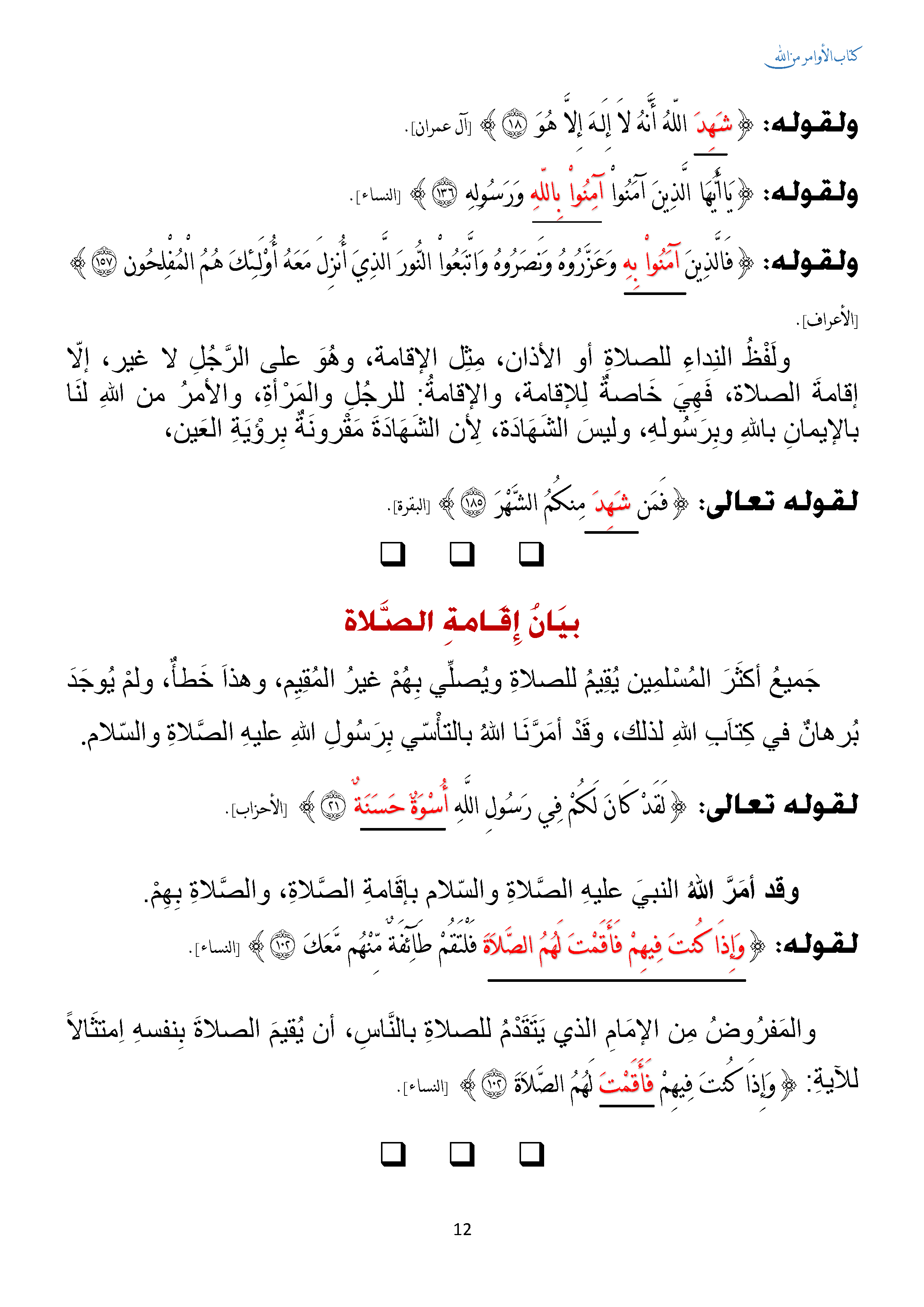 بيان اقامة الصلاة