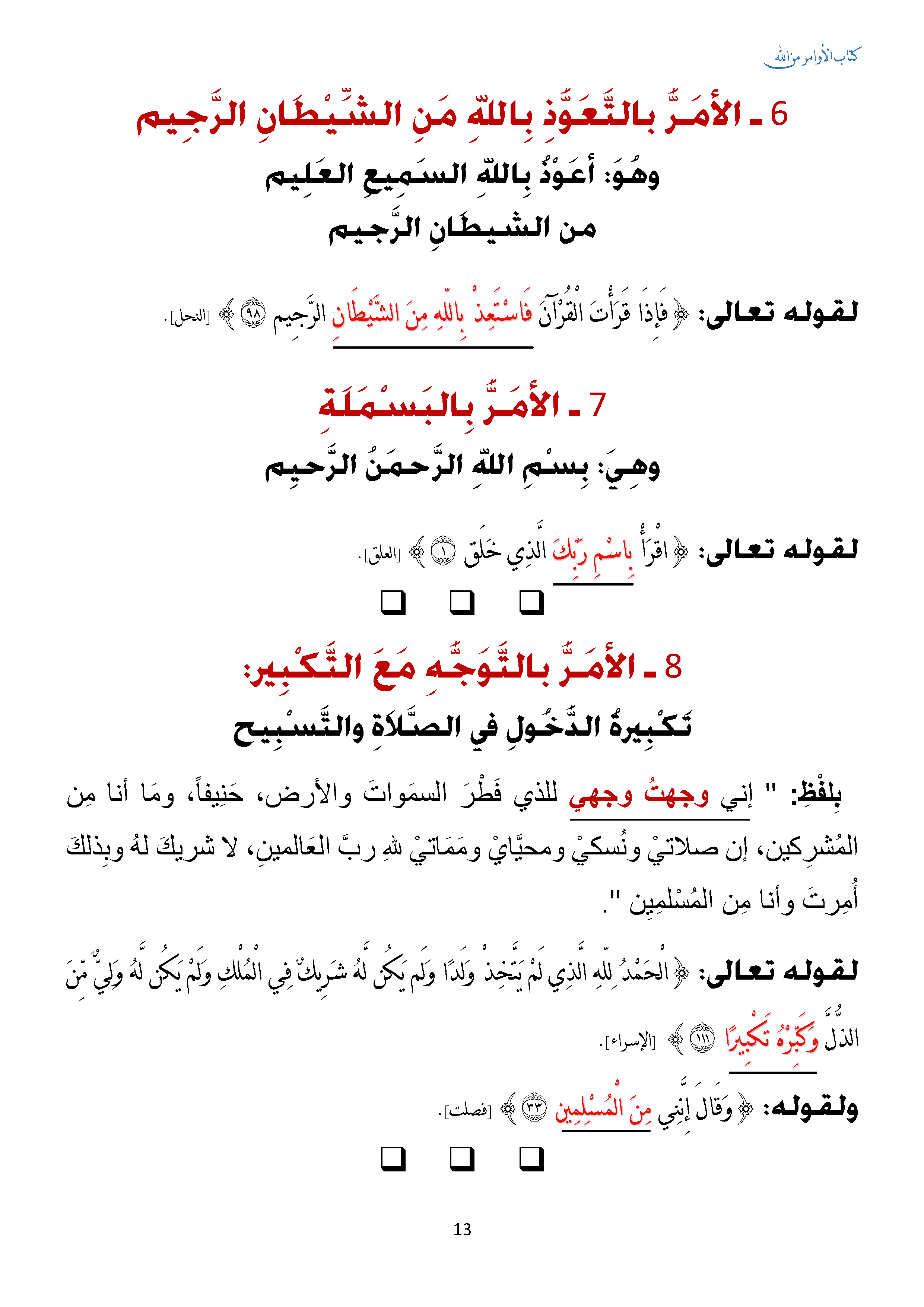 الأمر بالتعوذ والبسملة والتوجة