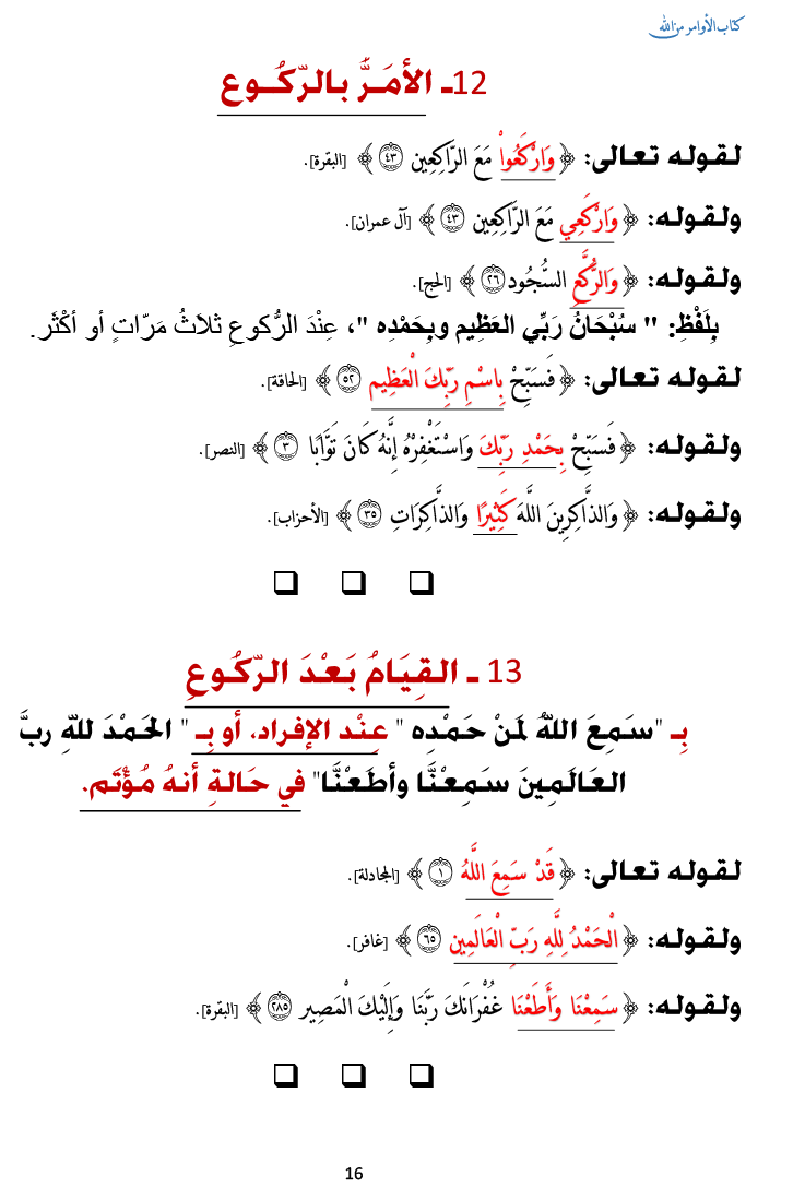 الأمر بالركوع والقيام بعد الركوع