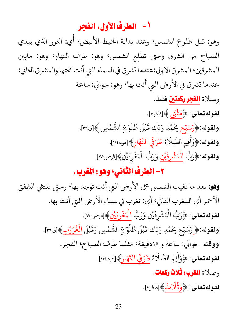 الطرف الأول، الفجر - الطرف الثاني وهو المغرب