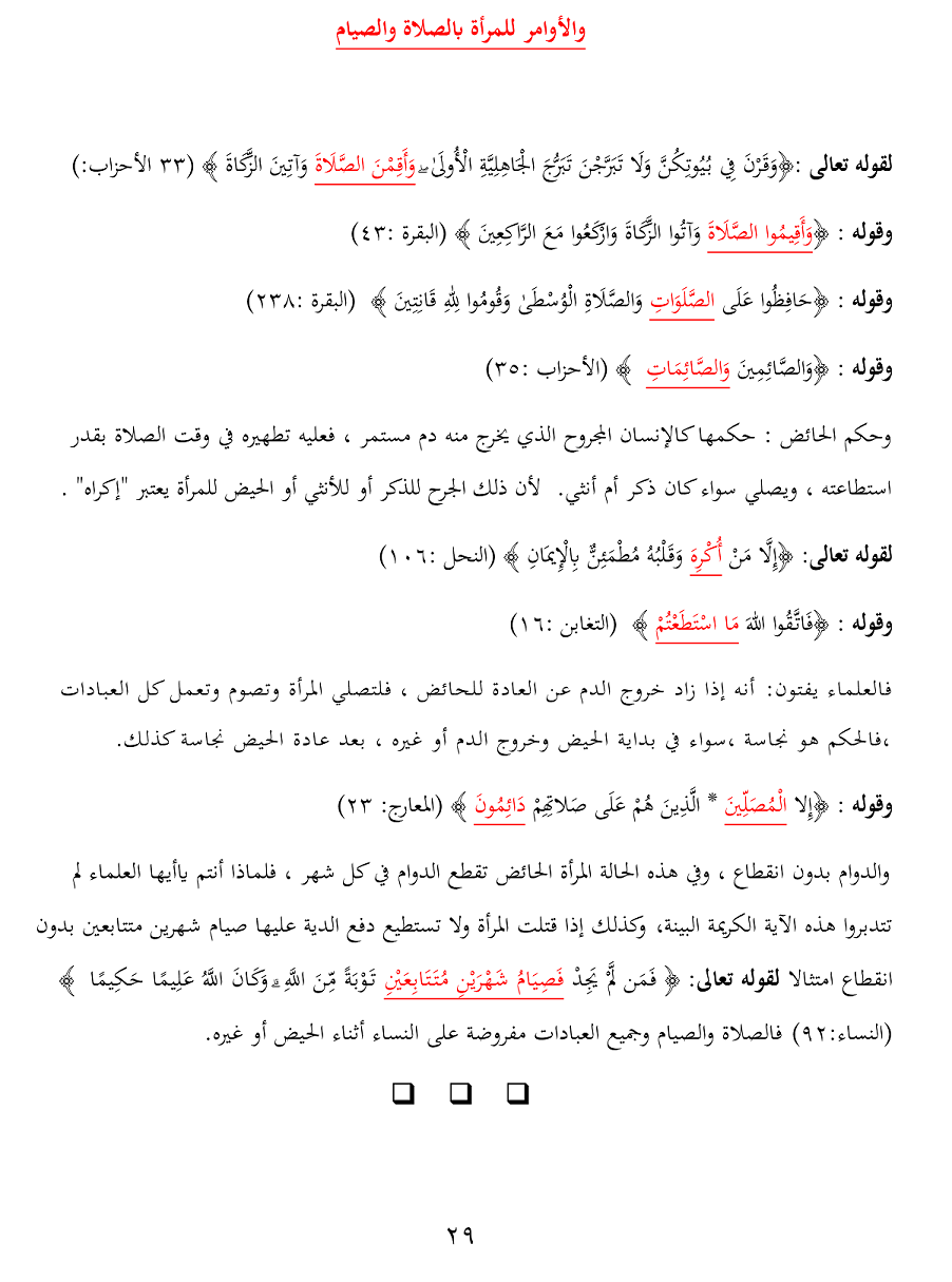 والأوامر للمرأة بالصلاة والصيام
