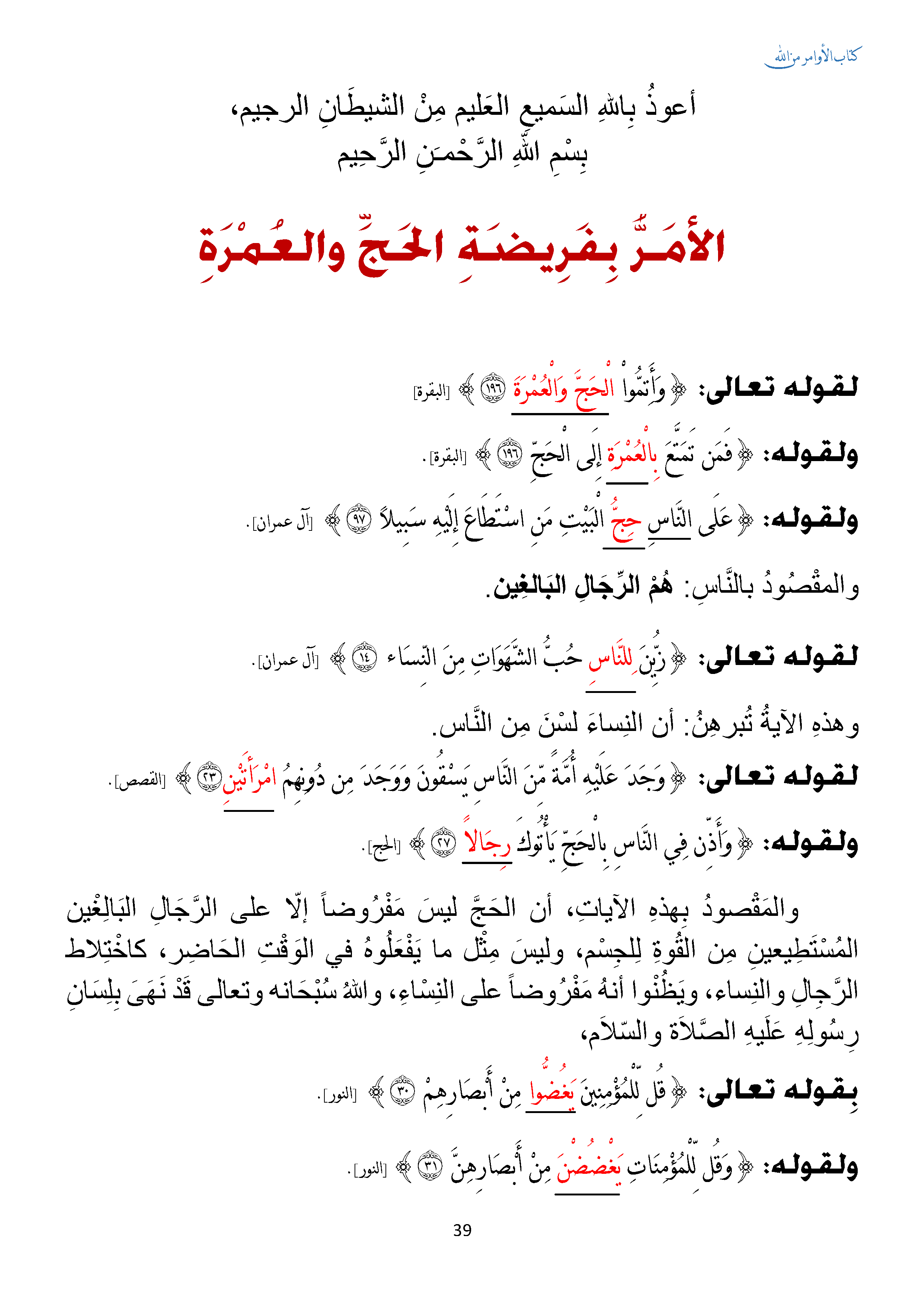 الأمر بفريضة الحج والعمرة