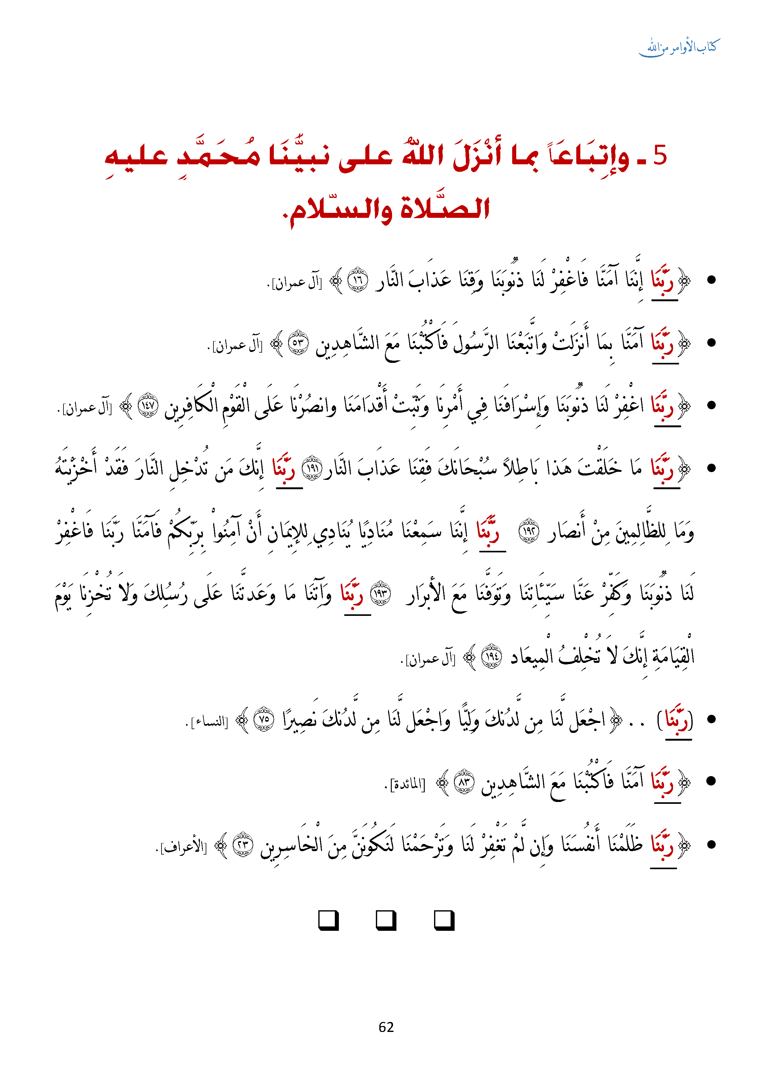 • وإتباعا بما أنزل الله على نبينا محمد