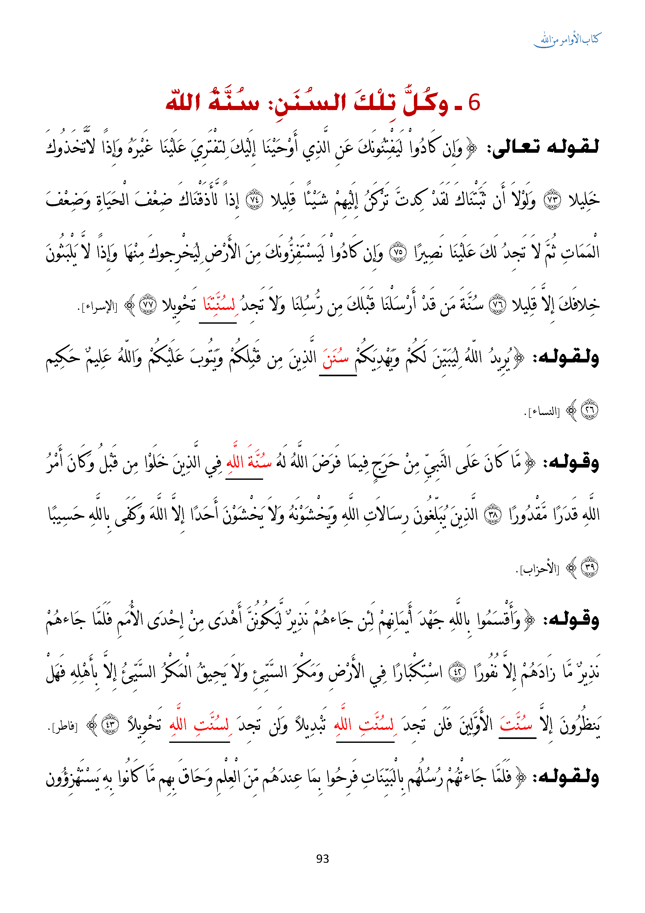وكل تلك السنن: سنة الله