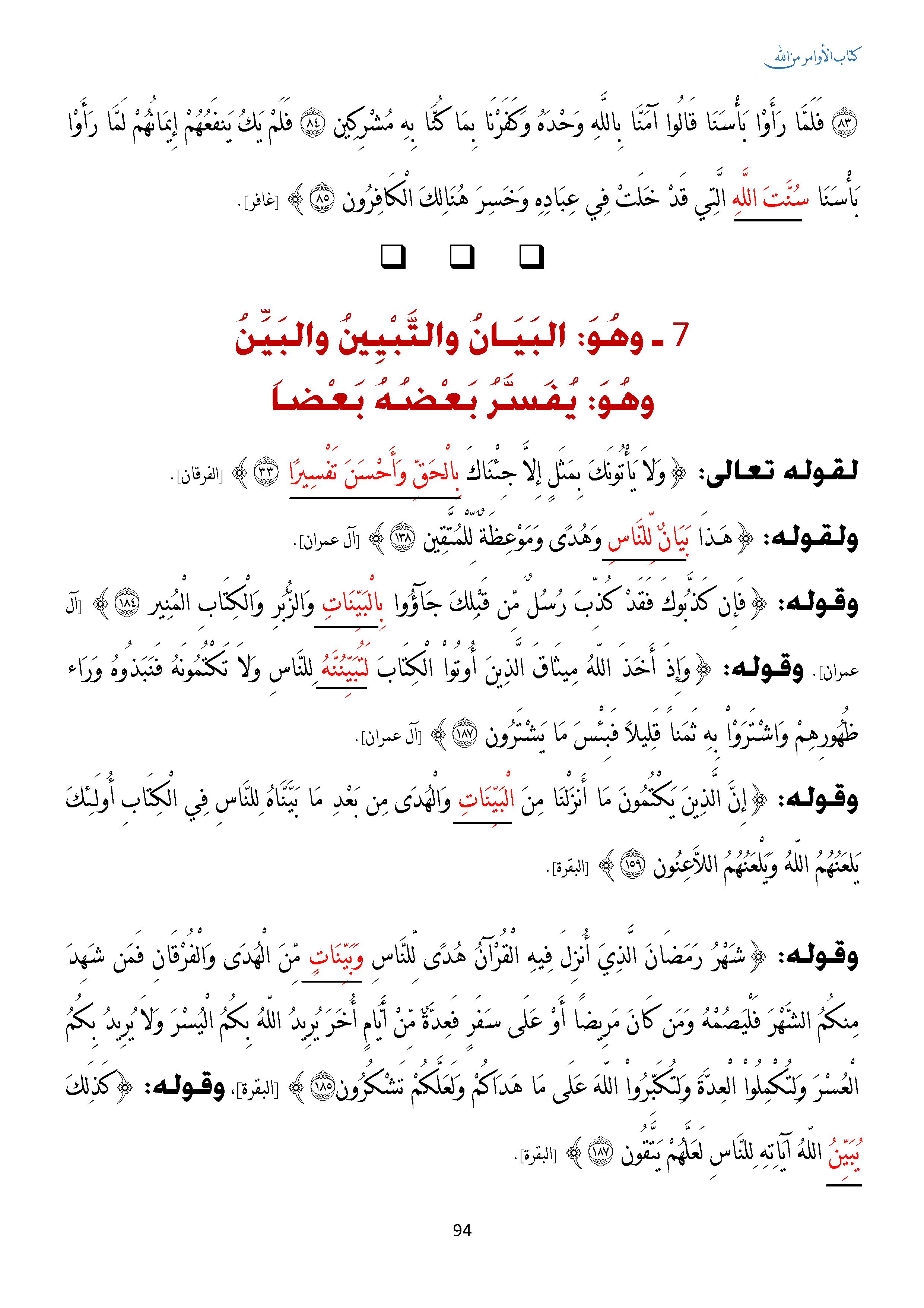 وهو: البيان والتبيين والبين
