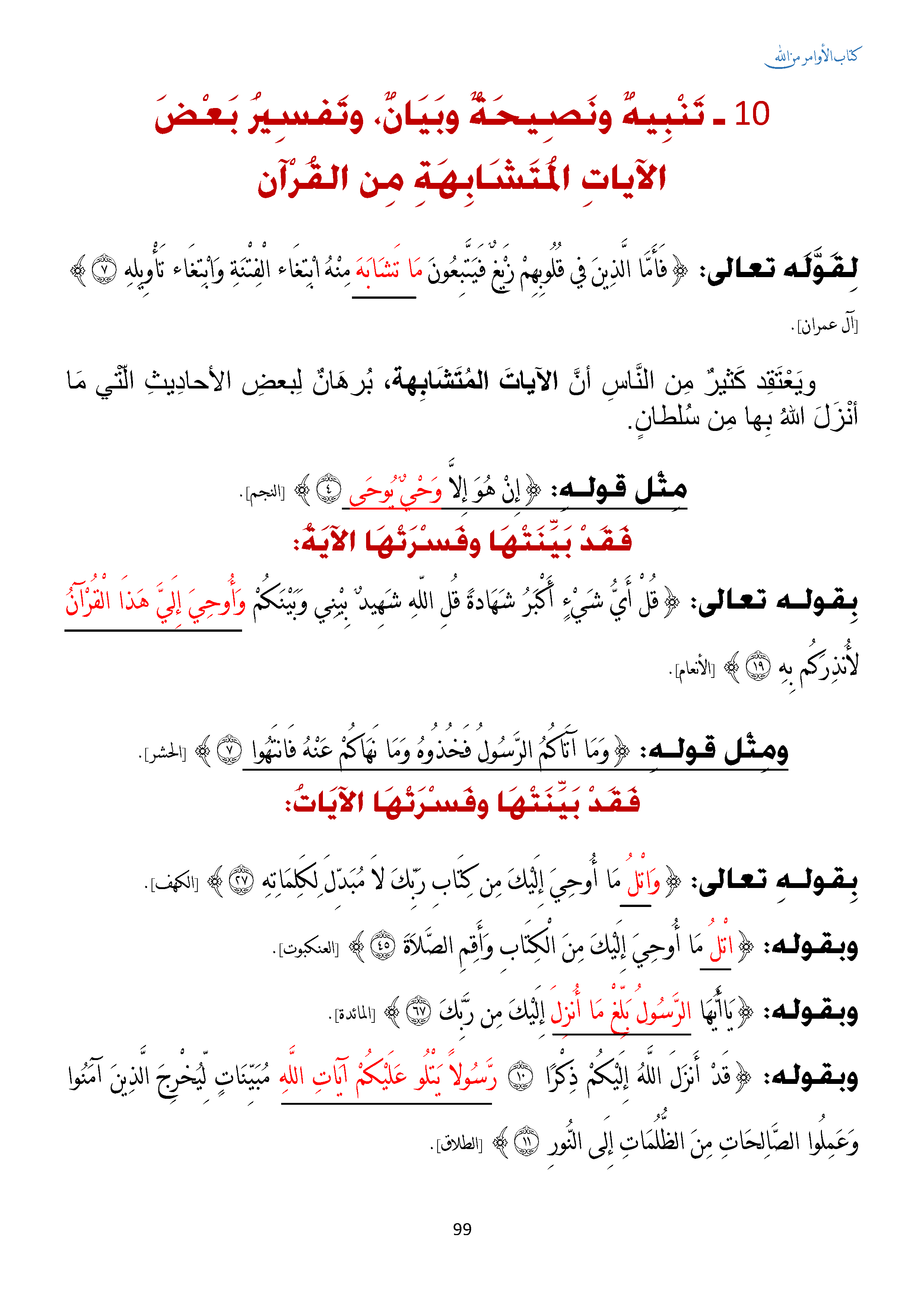 تنبيه ونصيحة وبيان، وتفسير
