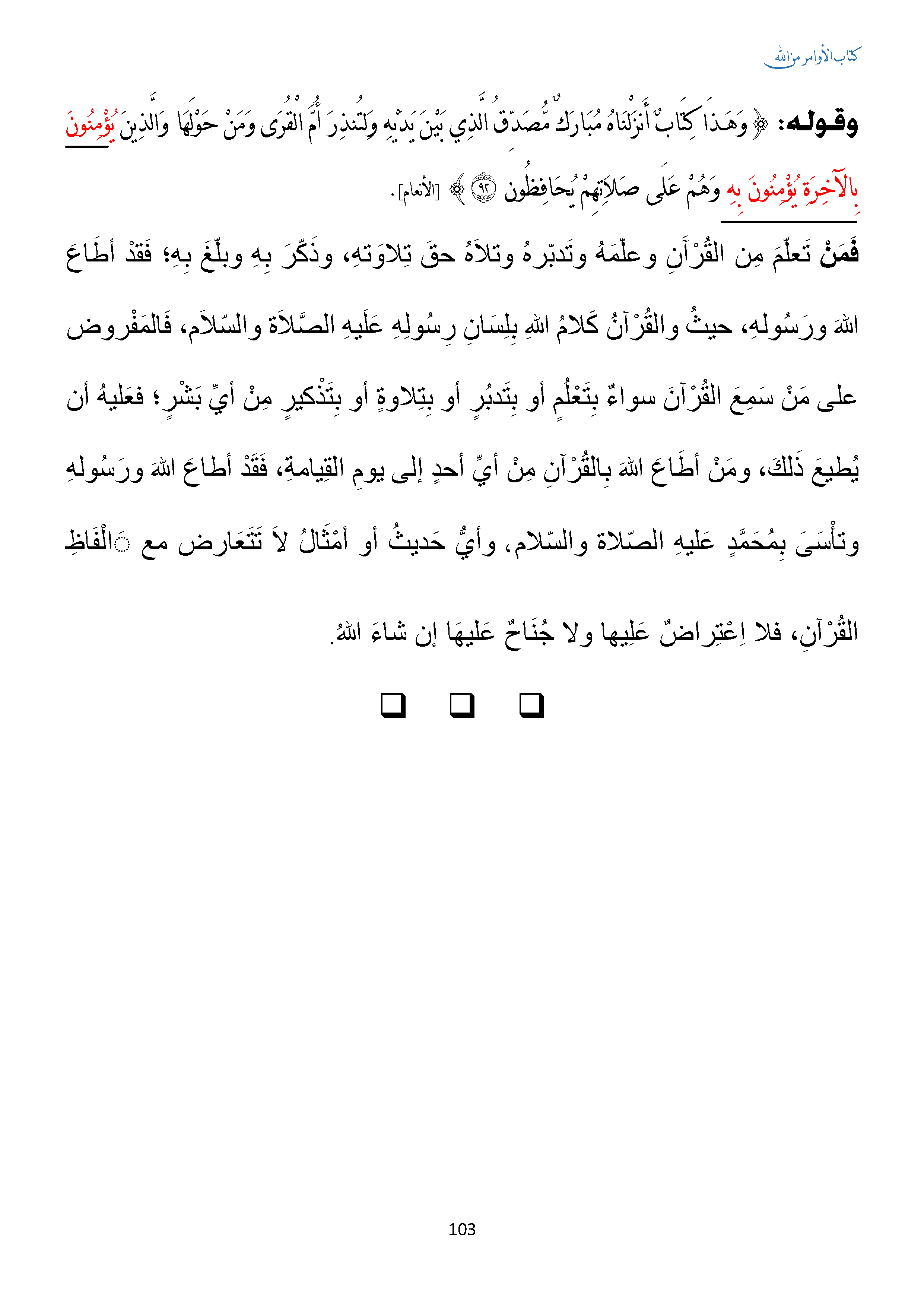 • الأمر بقراءة القرآن و اتباعه